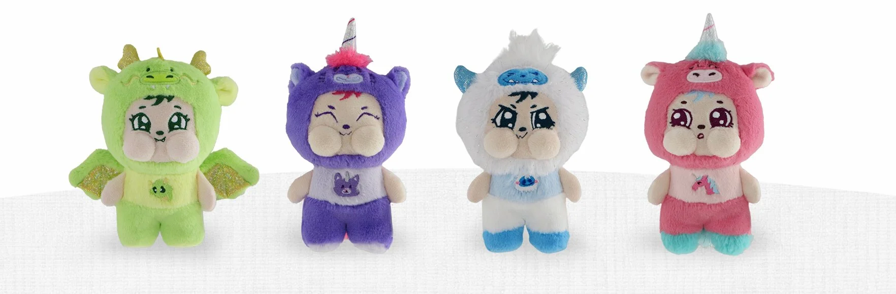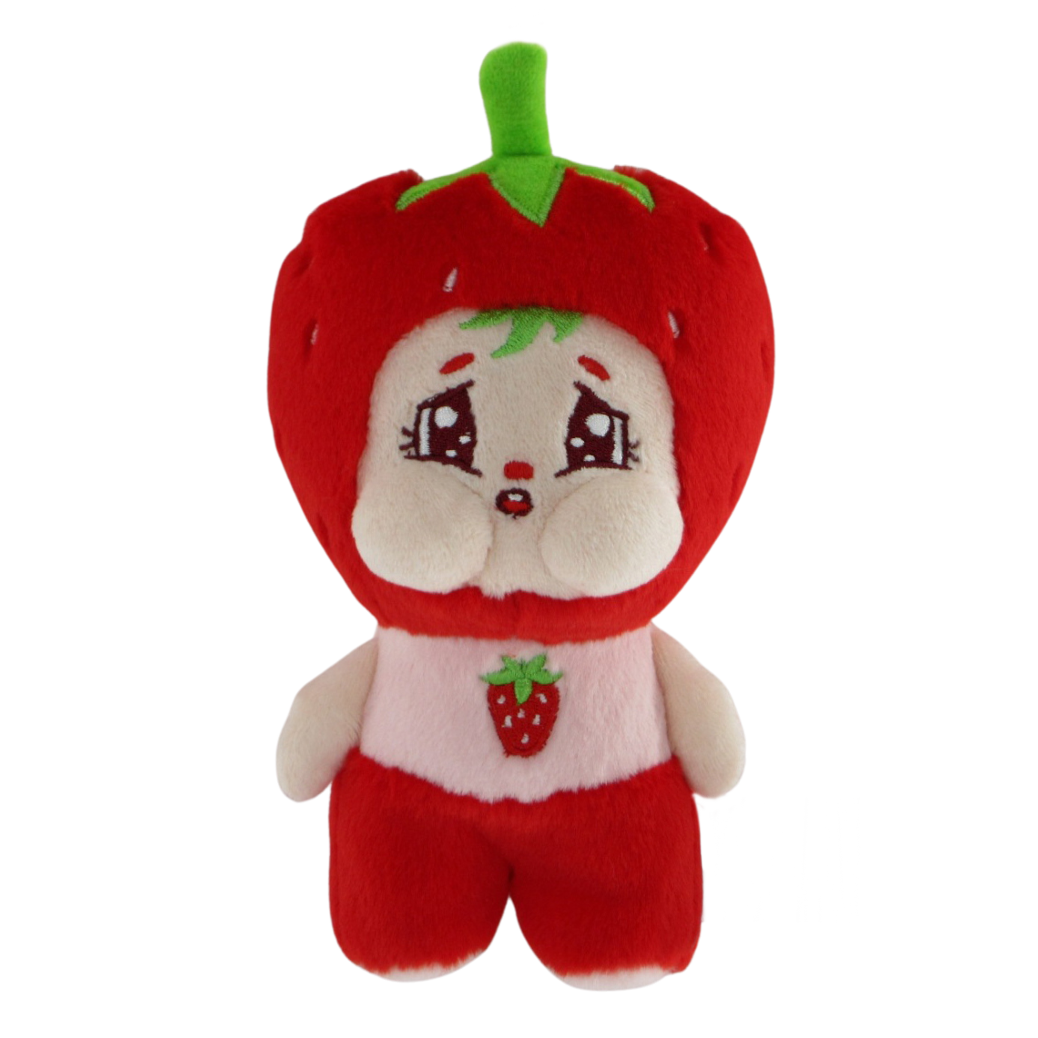 A collection of irresistibly cute, puff-cheeked plush friends dressed as fruits, sweets, flowers, and more.